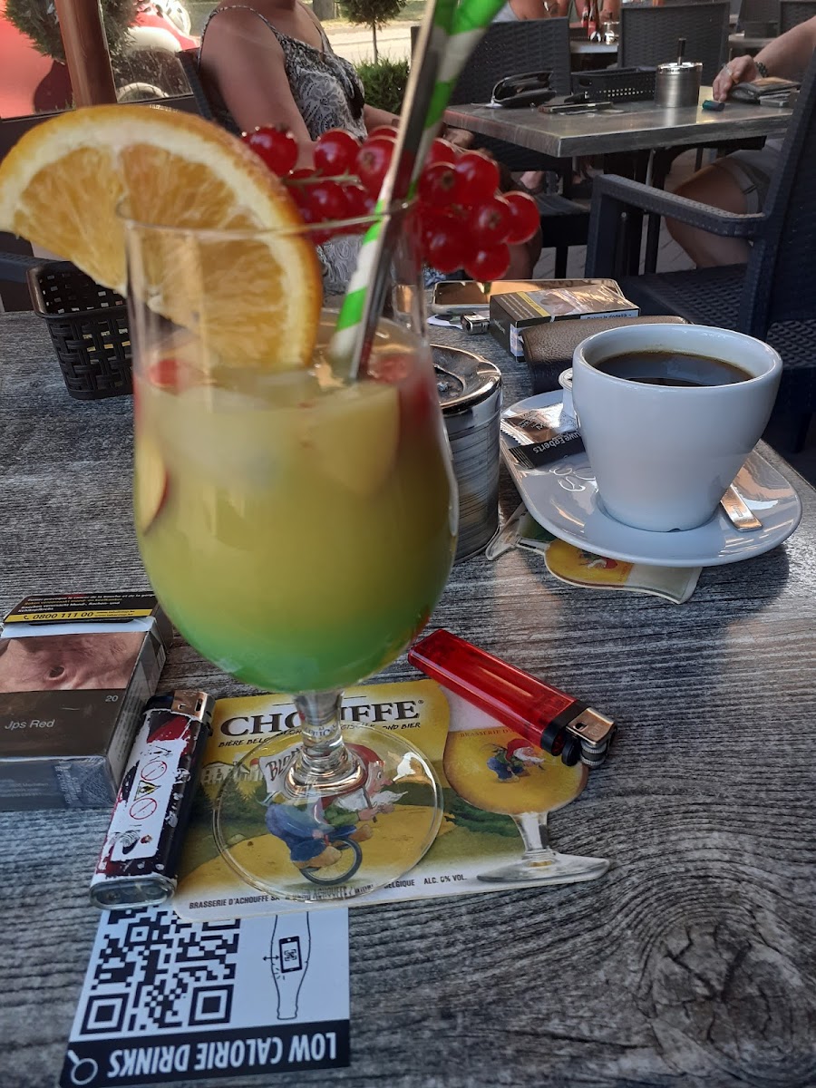 The indoor setting is cozy, complementing a beautifully arranged terrace adorned with comfortable garden furniture, making it an ideal spot for an afternoon escape. As noted by many satisfied customers, the ambiance is lively yet intimate, perfect for both casual meetups and quiet moments of solitude. A regular visitor, Willy Heirwegh, expressed his fondness for the welcoming service and indicated that a relaxing afternoon here is always accompanied by his favorite Italian coffee and a fine wine.